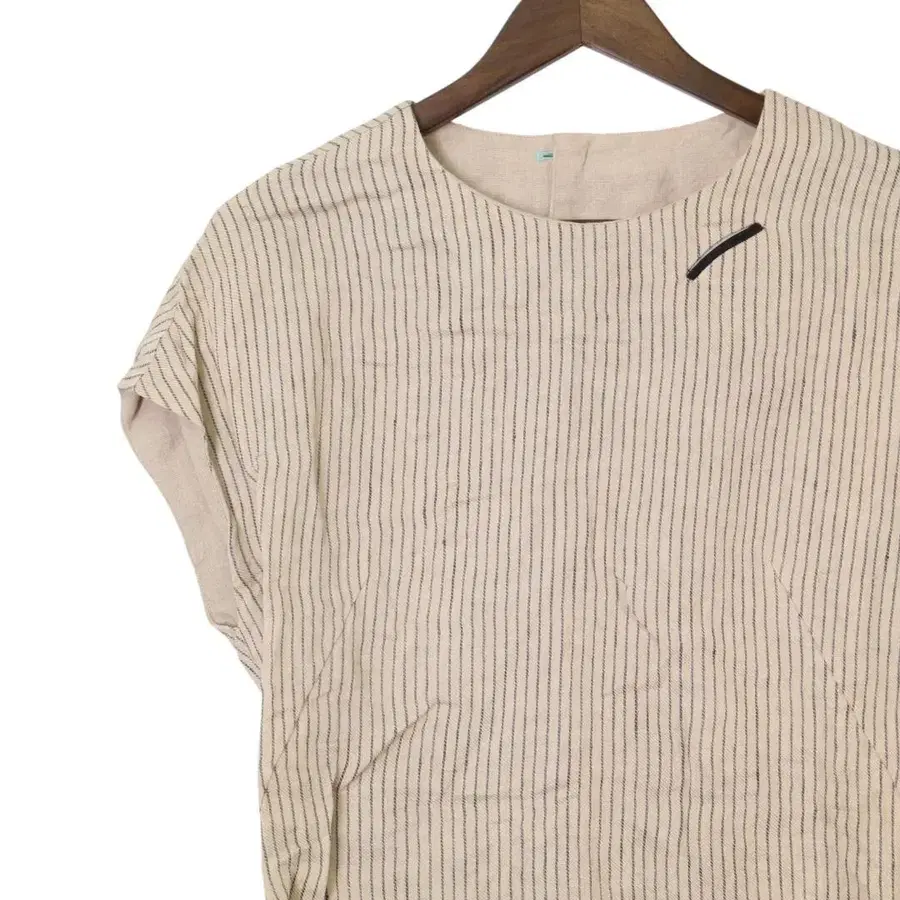 • 이치 롱 원피스 린넨 혼방 스트라이프 루즈핏 베이지 네이비