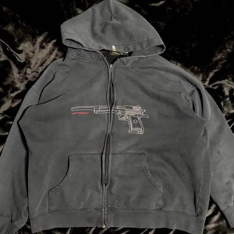 풀 집업 후드티 건 프린트 페이드 그레이 스트릿 구제 의류