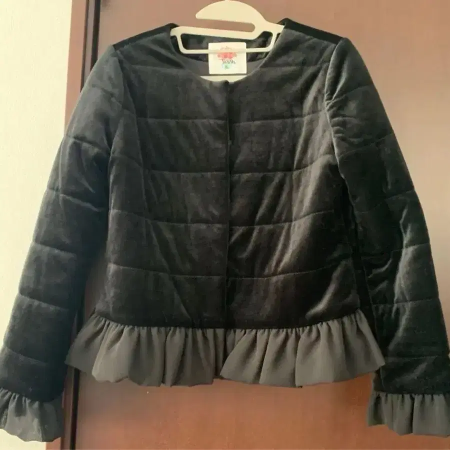 토와레 프릴 달린 블랙 퀼팅 자켓 충전솜