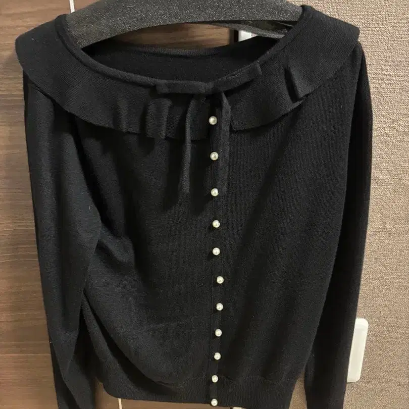 스트로베리 필드 블랙 니트 긴팔 프릴 옷깃