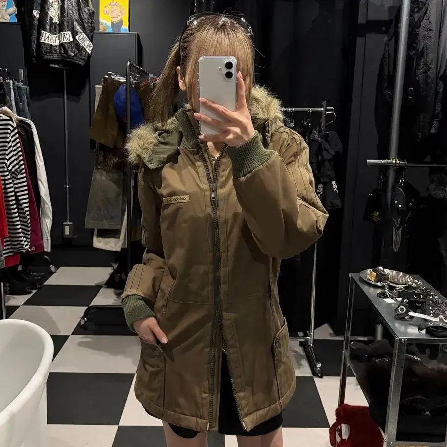 아디다스 00s 퍼 모즈 코트 카키 암 라인 로고