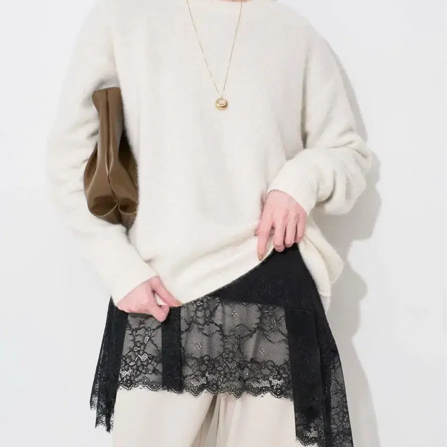 미사용 새상품 슬로브 이에나 SLOBE IENA 레이스 콤비 티셔츠 블랙