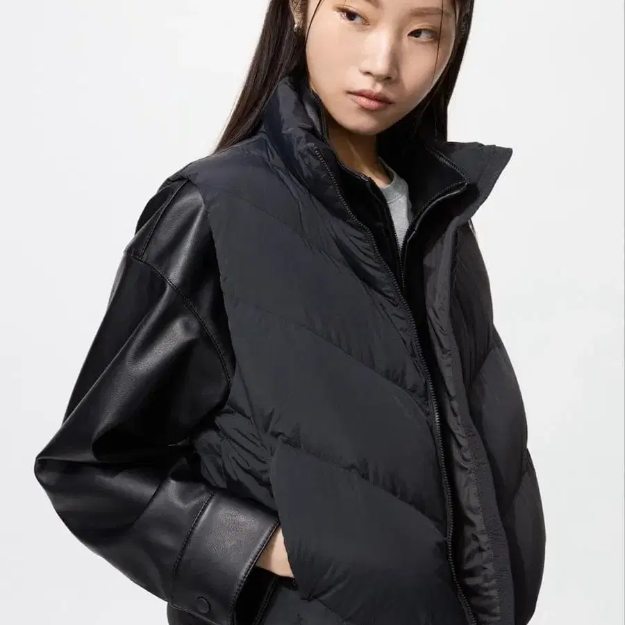유니클로 퍼프 테크 크롭 베스트 L 사이즈 블랙