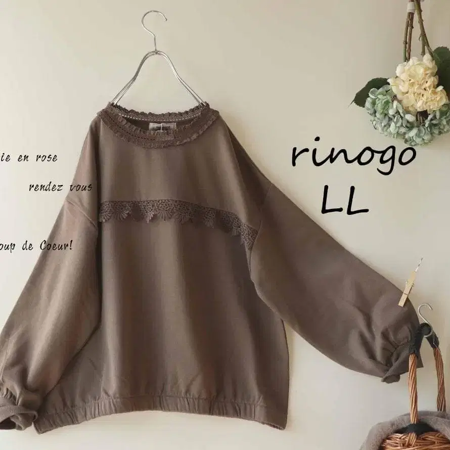 새상품 할인*LL 브라운*레이스 사용 페미닌 맨투맨 속기모 빅 사이즈