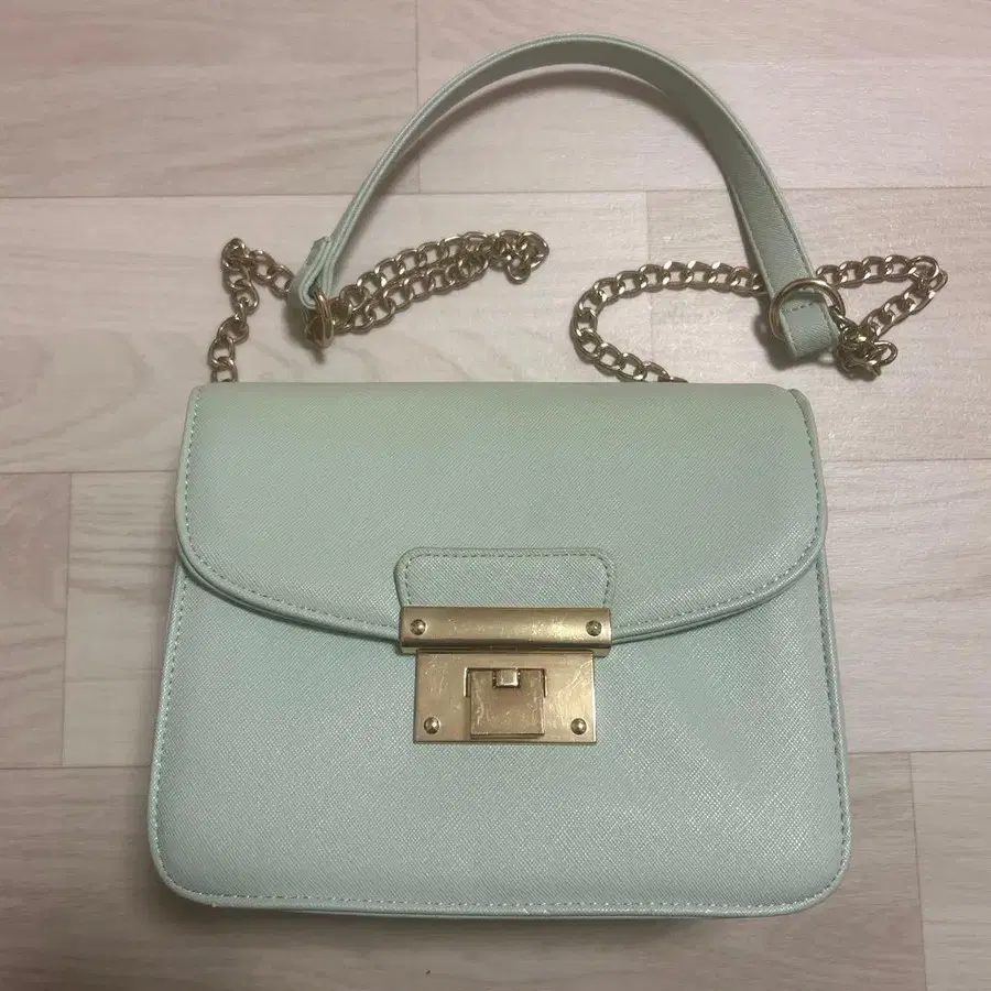 민트 그린 숄더백 체인 스트랩