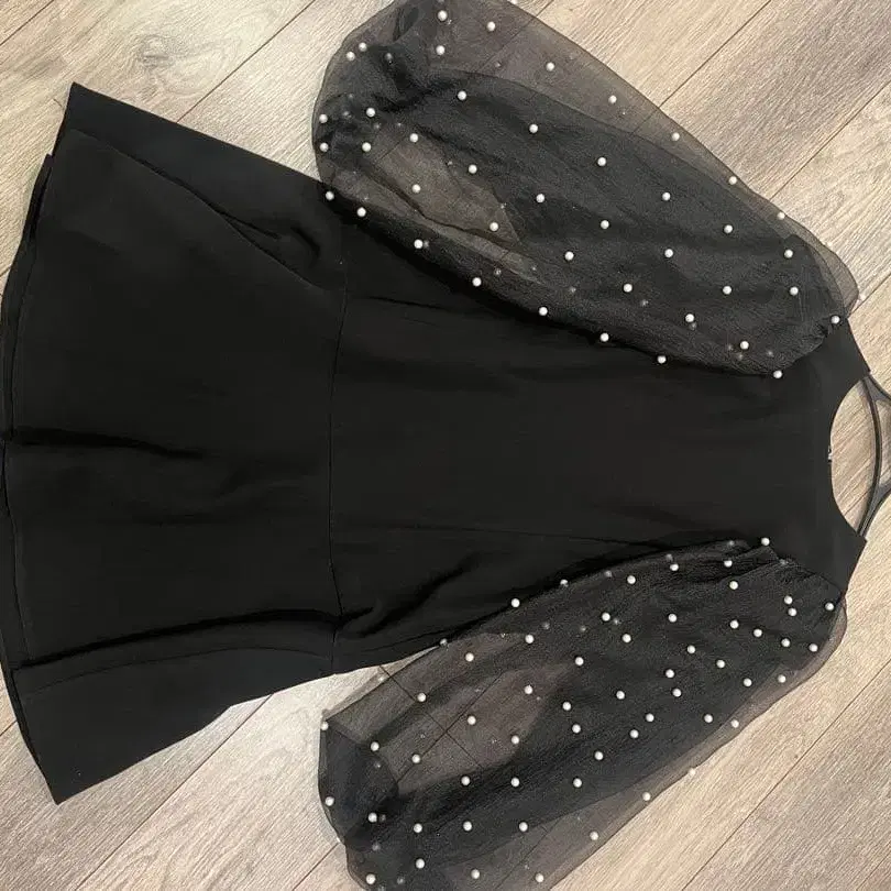 eimy 블랙 펄 장식 시어 원피스