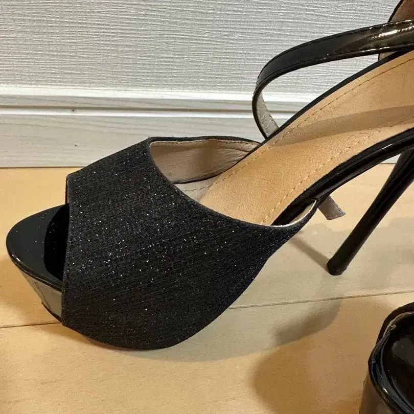 블랙 글리터 오픈토 하이힐