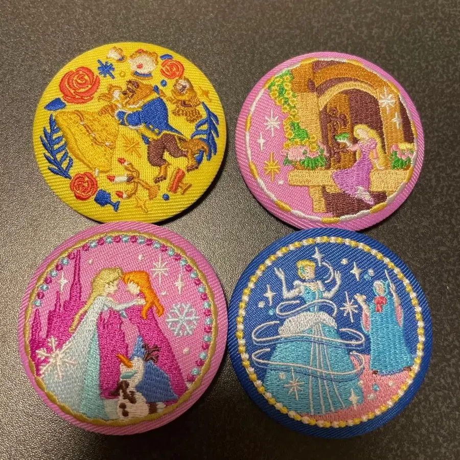 [ 미사용 새상품 ] 디즈니 자수 캔뱃지 4개 세트