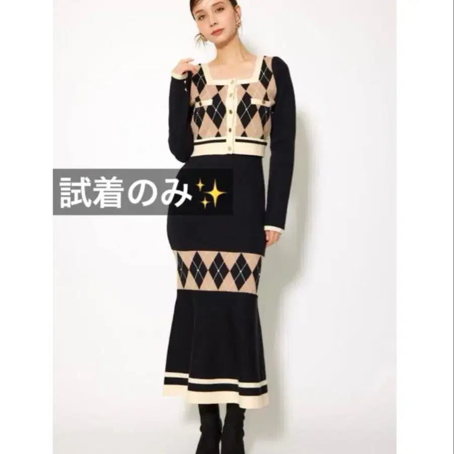 rienda 아가일 바이컬러 가디건 세트 니트 원피스