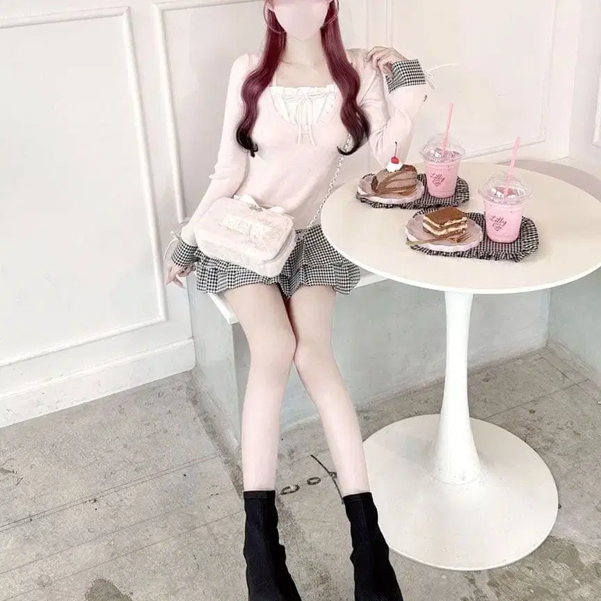 HONEY MEW 하운드투스 체크 플리츠 도킹 원피스 핑크 XS 허니뮤우