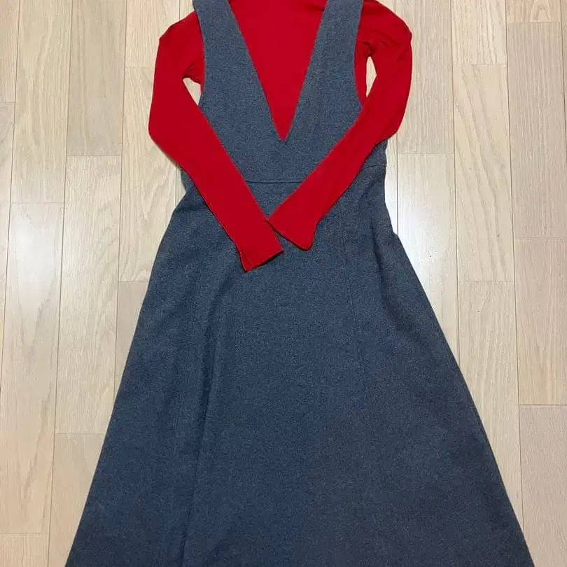 유니클로 저지 오버롤 스커트 & 지유 터틀넥 2세트