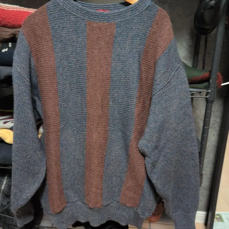 PENTHOUSE 파랑과 브라운 스트라이프 니트 M
