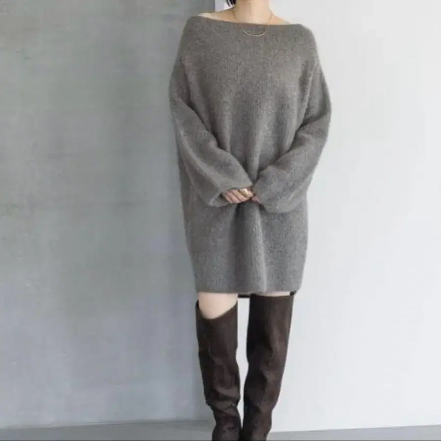 그레이 오프숄더 니트 원피스 FREE 사이즈