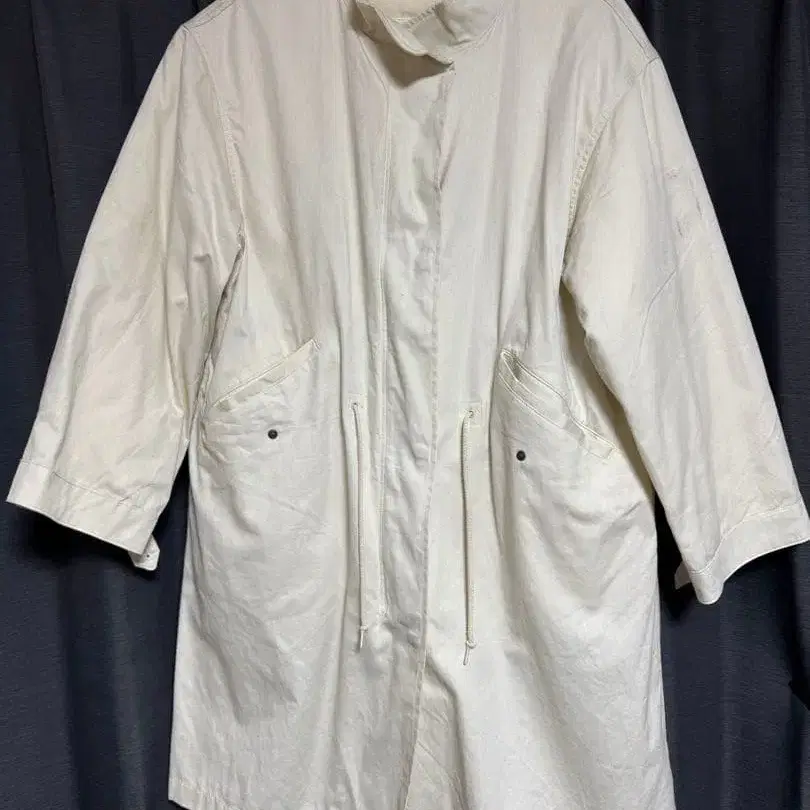 인기 화이트 롱 코트 프론트 포켓 부착