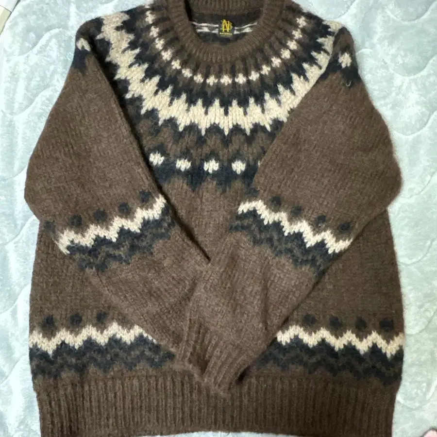 BATONER 모헤어 니트 노르딕 무늬 브라운
