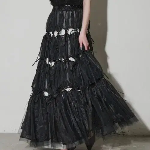 택 포함 LA BELLE ETUDE 볼륨 튤 리본 스커트