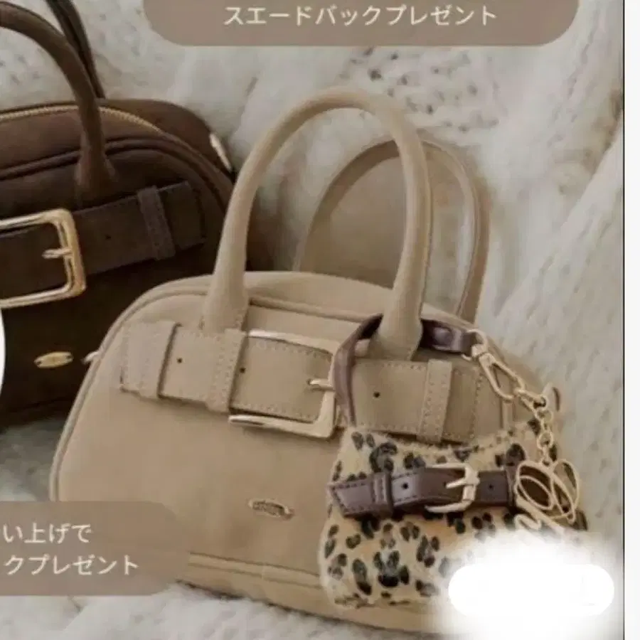 Chico 미니백 참 포함 스웨이드백 캐러멜 레오파드 무늬 참