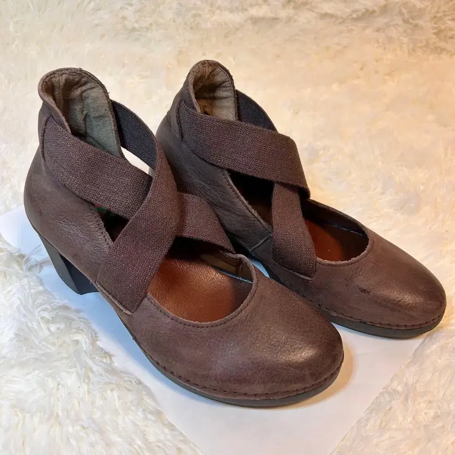 새상품급 스테판 케리안 5/약 24cm 펌프스 스트랩 웨지 천연 가죽