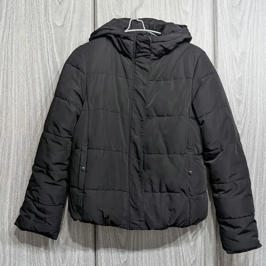 블랙 후드 부착 충전솜 다운 자켓 GU
