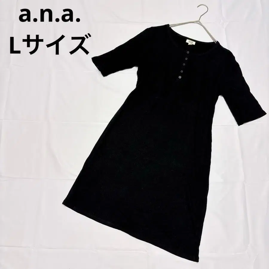 자동 번역되었어요. 원문보기버튼이 달린 헨리넥 디자인의 블랙 반팔 원피스, 사이즈 L.