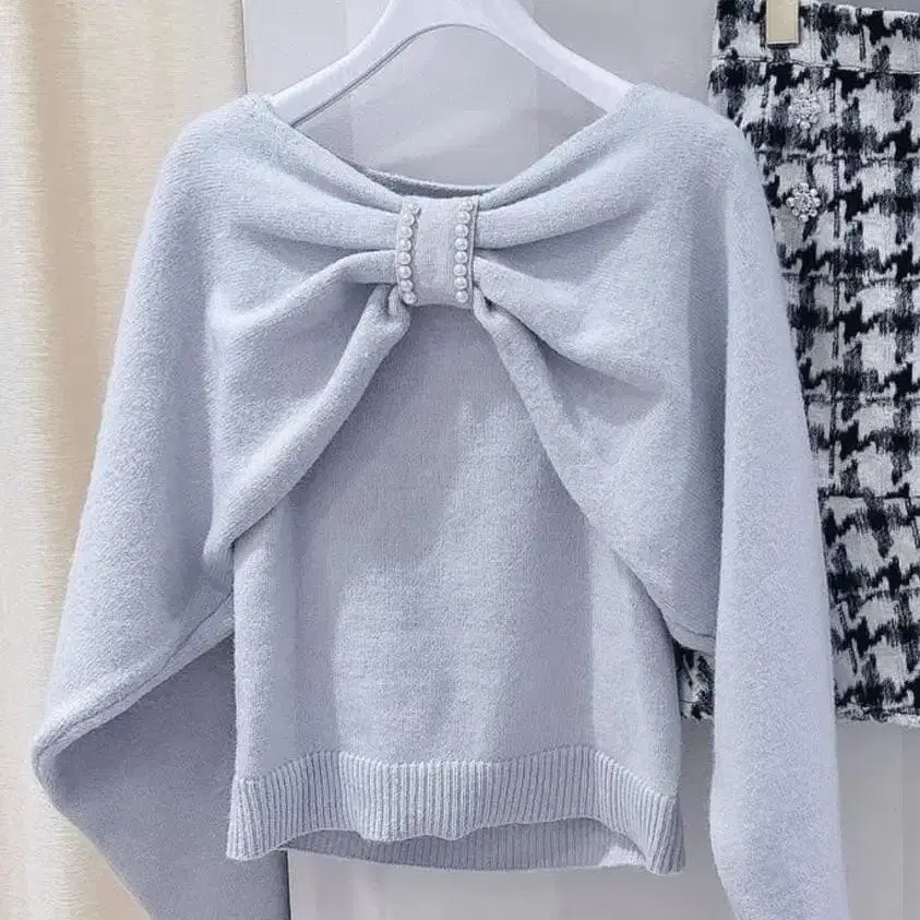 evelyn 에블린 리본 펄 니트 아이스 그레이