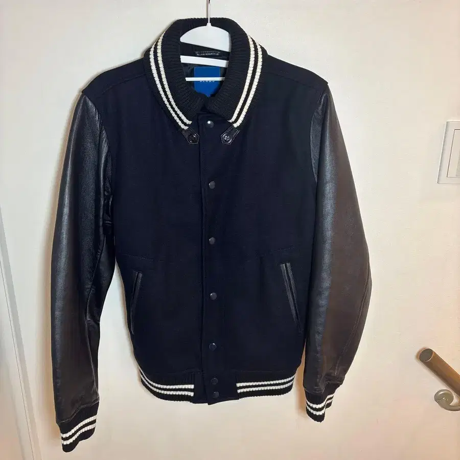 빔즈 가죽 소매 절개 바시티 자켓 블루종 점퍼 양가죽 L 사이즈