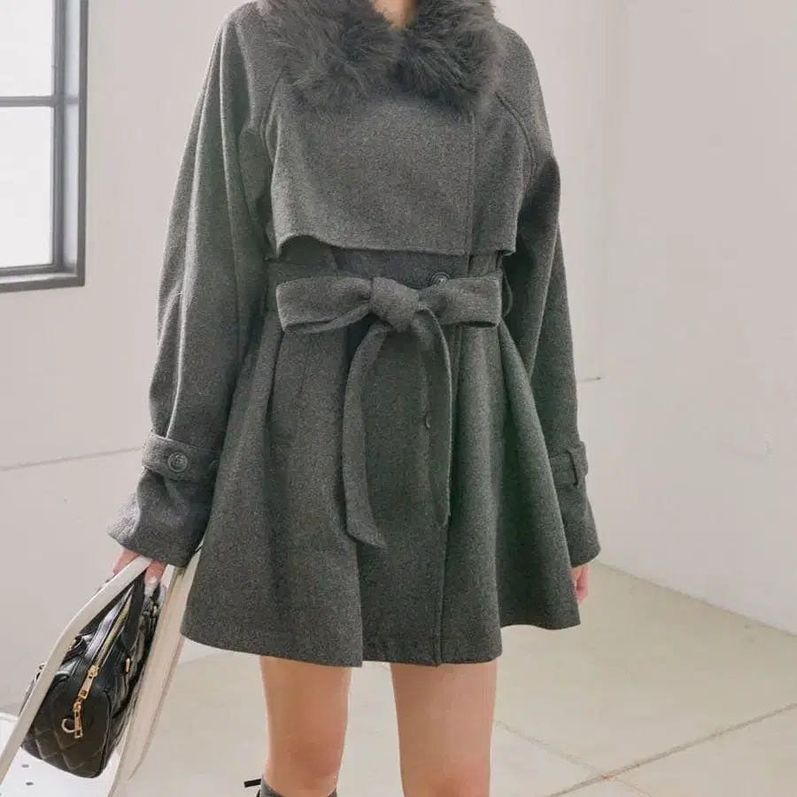 복슬복슬한 퍼가 성숙 큐트한 미들 기장 코트