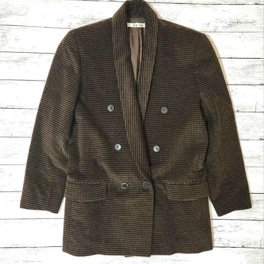• 여성용 아우터 울 자켓 하운드투스 패턴 M
