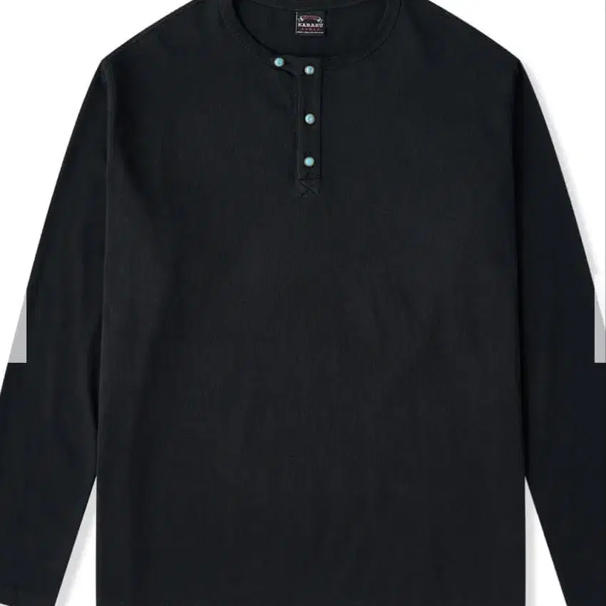 KARAKU 터콰이즈풍 버튼 부착 개량형 헨리넥 T셔츠
