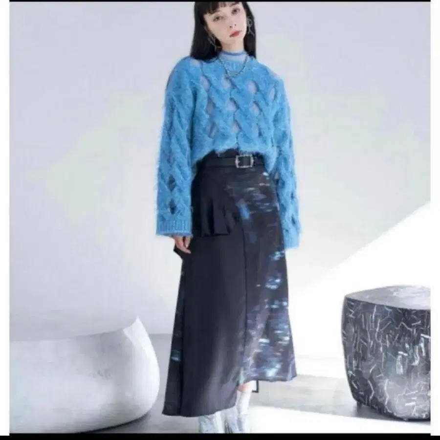 오리지널로 흐릿한 듯한 플라워 무늬를 사용한 고급 스커트입니다.