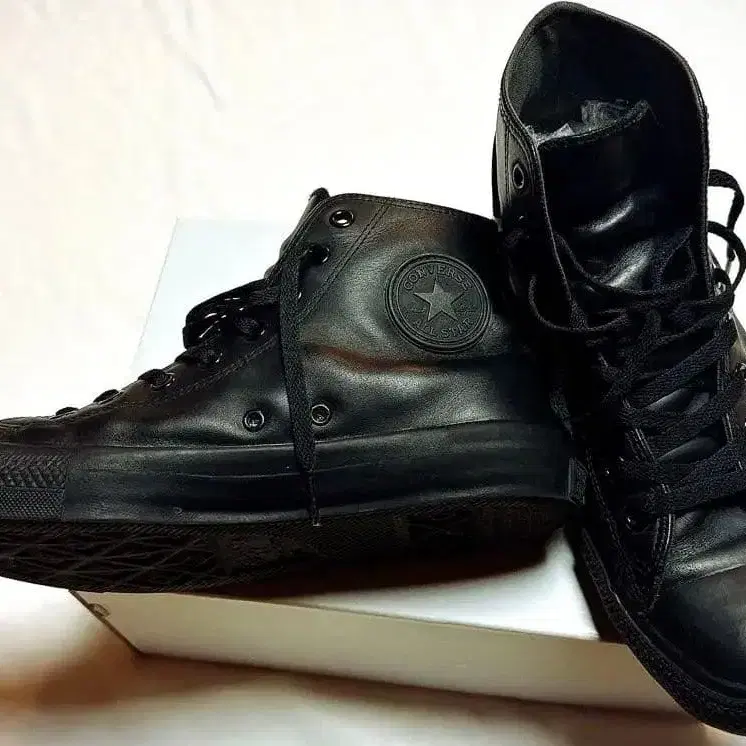 28cm Converse 컨버스 가죽 블랙 하이컷 스니커즈