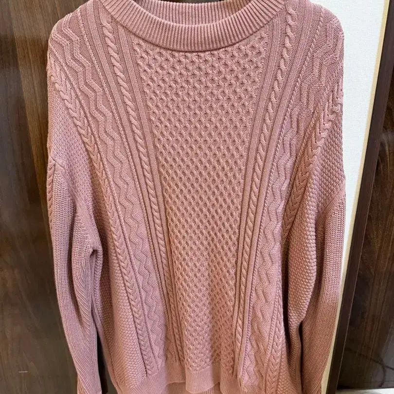 쉽스 케이블 니트 핑크 피셔맨 아란 니트 L 사이즈