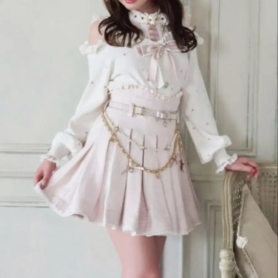 LIZLISA 체인 벨트 부착 턱 플레어 치마바지