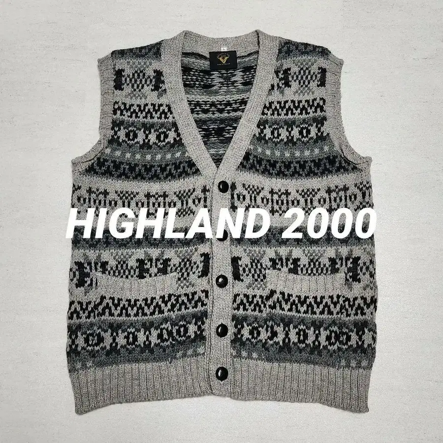 영국제 HIGHLAND 2000 두툼한 니트 베스트 노르딕 무늬 그레이