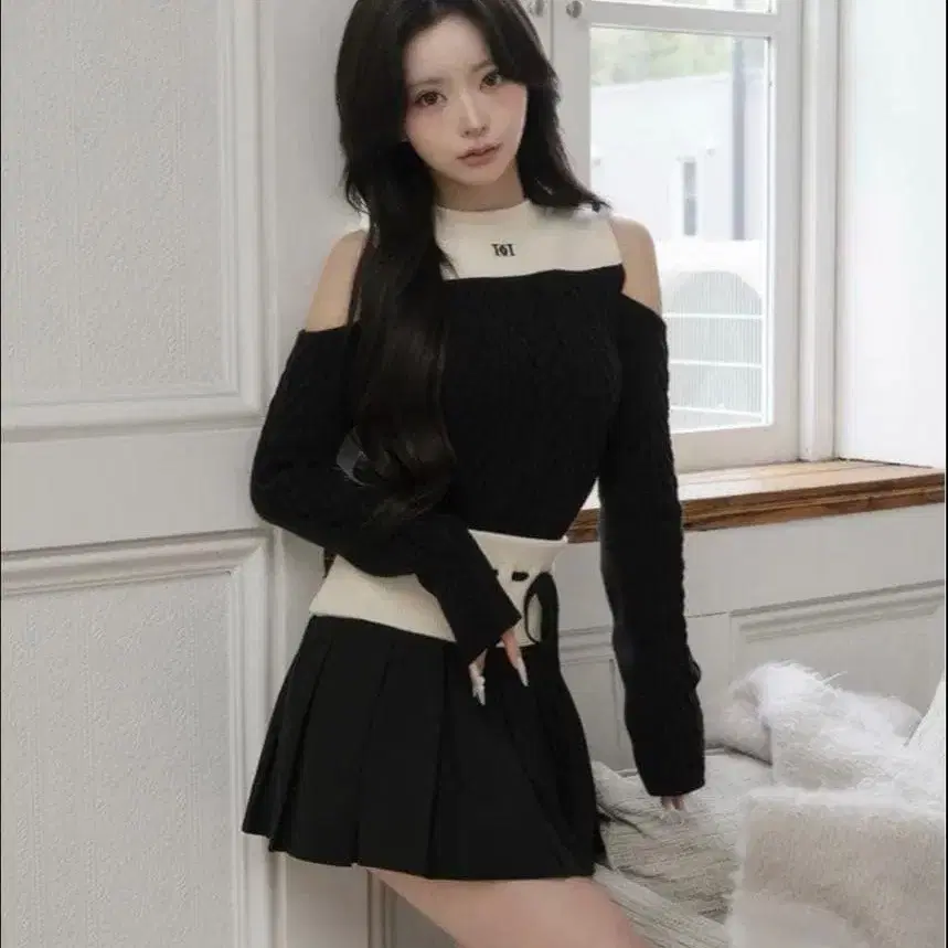 Darich 숄더 오픈 니트 셋업 블랙 FL