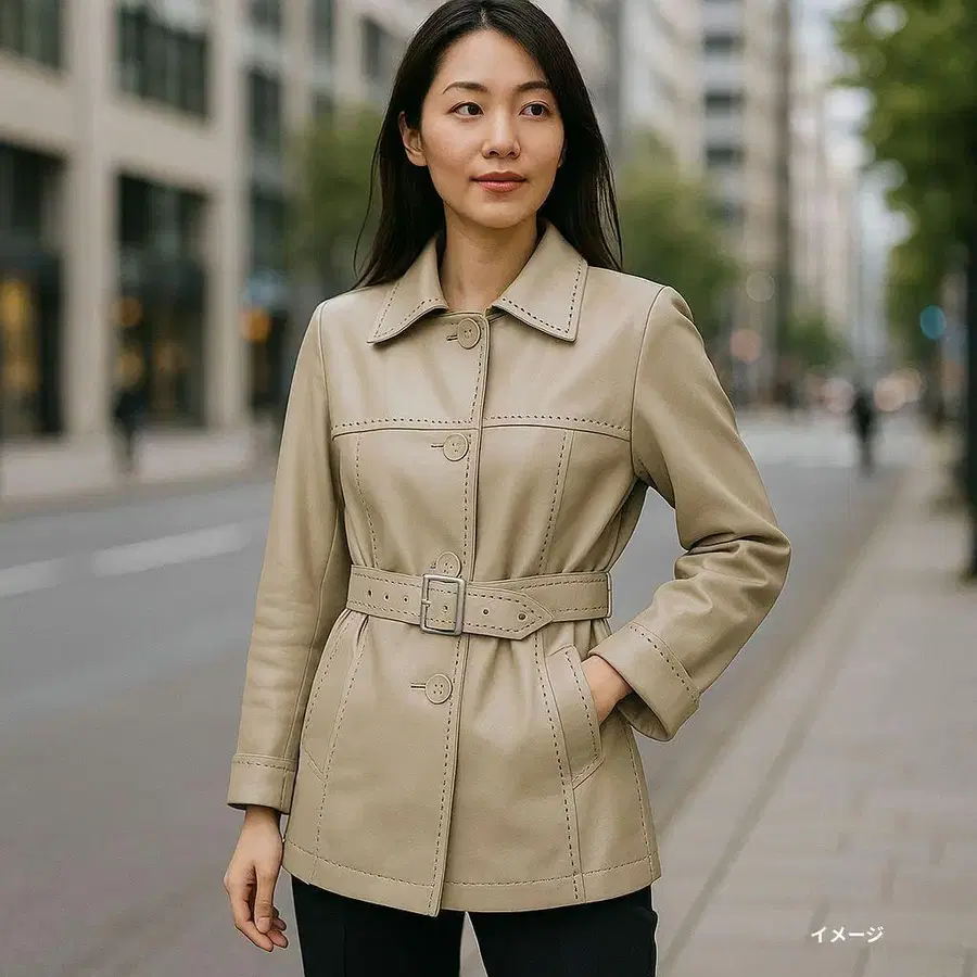 자동 번역되었어요. 원문보기포켓, 벨트, 절개 부분에 스티치가 들어간 스타일리시한 베이지 색상의 가죽 자켓입니다. 개성 있는 디자인의 자켓으로 멋스러운 아이템입니다.