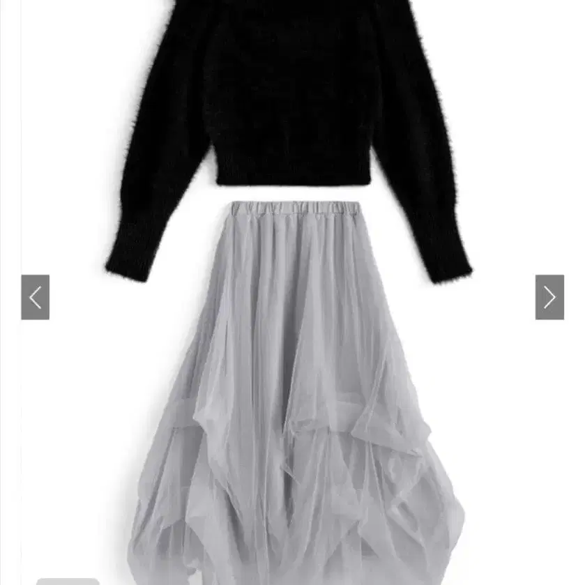 오프숄더 샤기 니트탑 x 튤 스커트 셋업