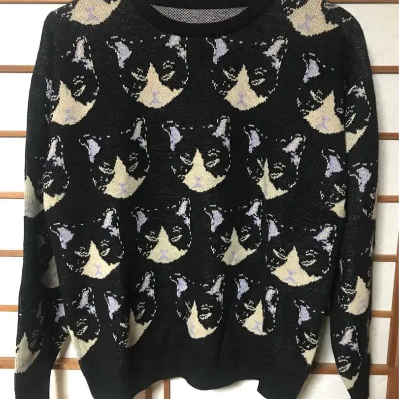 하치와레 고양이 패턴이 매우 귀여운 올 패턴 니트입니다.