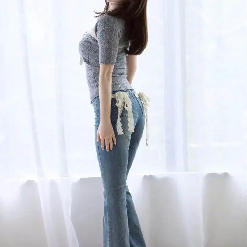 andmary Lacey ribbon heart hip denim