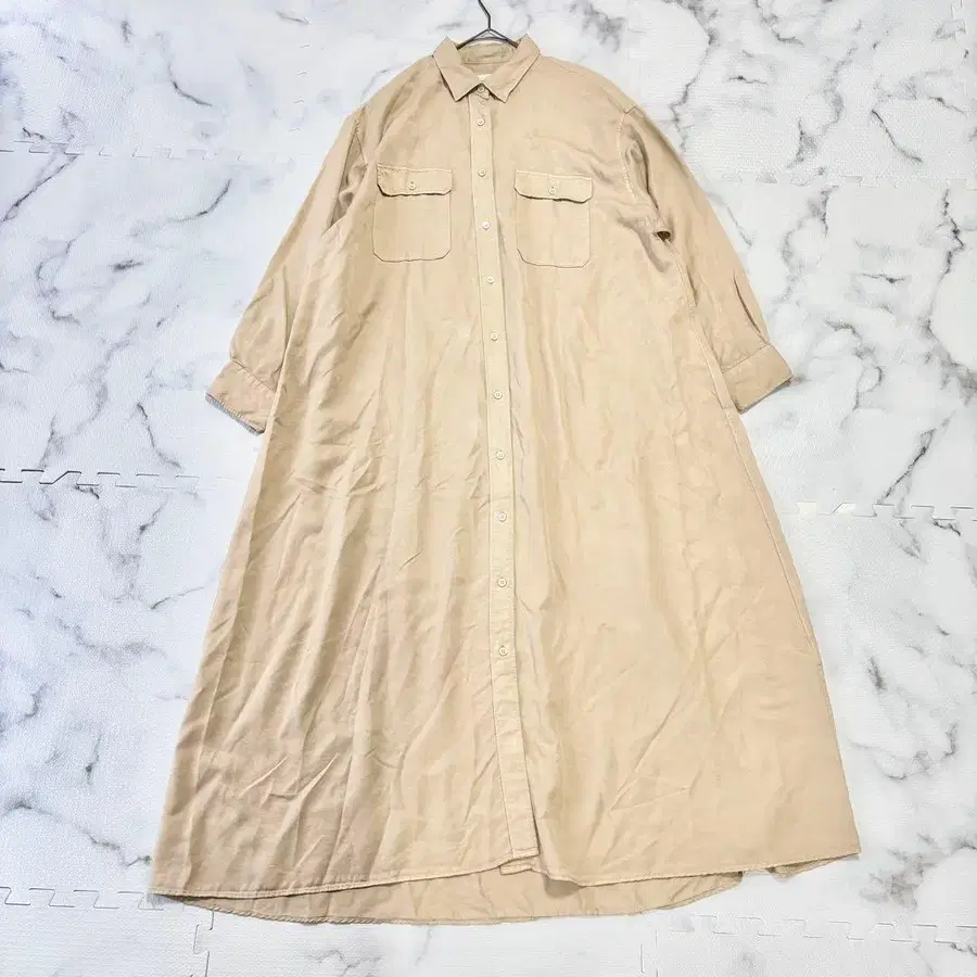 새상품급 FRAMeWORK 맥시 길이 셔츠 원피스 베이지 M