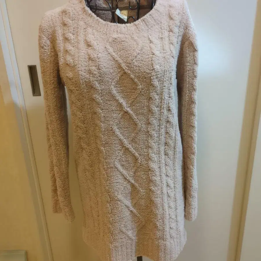 베이지 케이블 짜임 긴팔 니트