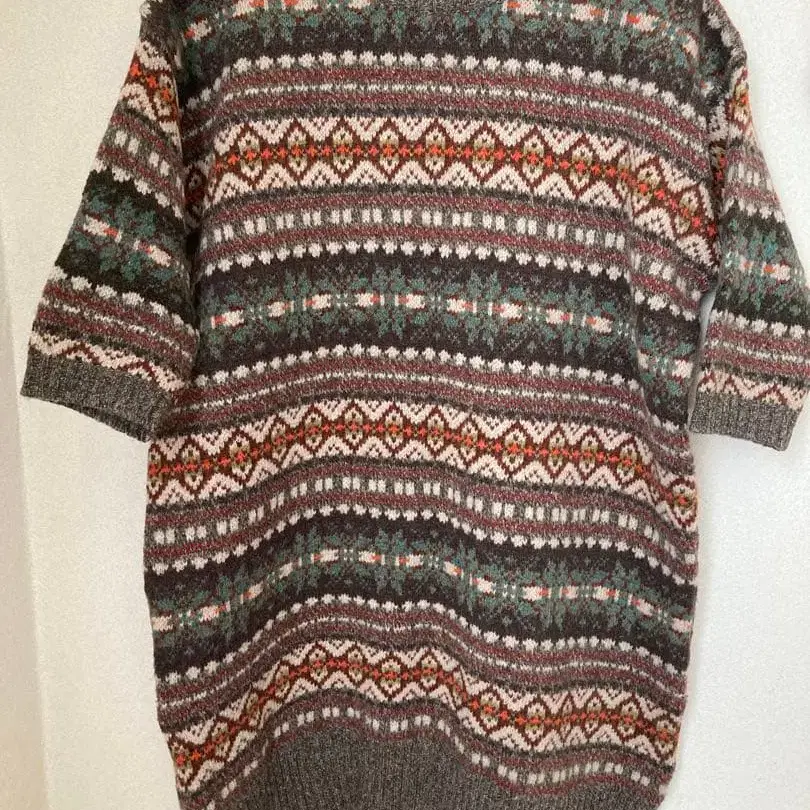 새상품급 iliann loeb 이리안 로브 페어아일 패턴 반팔 롱 니트