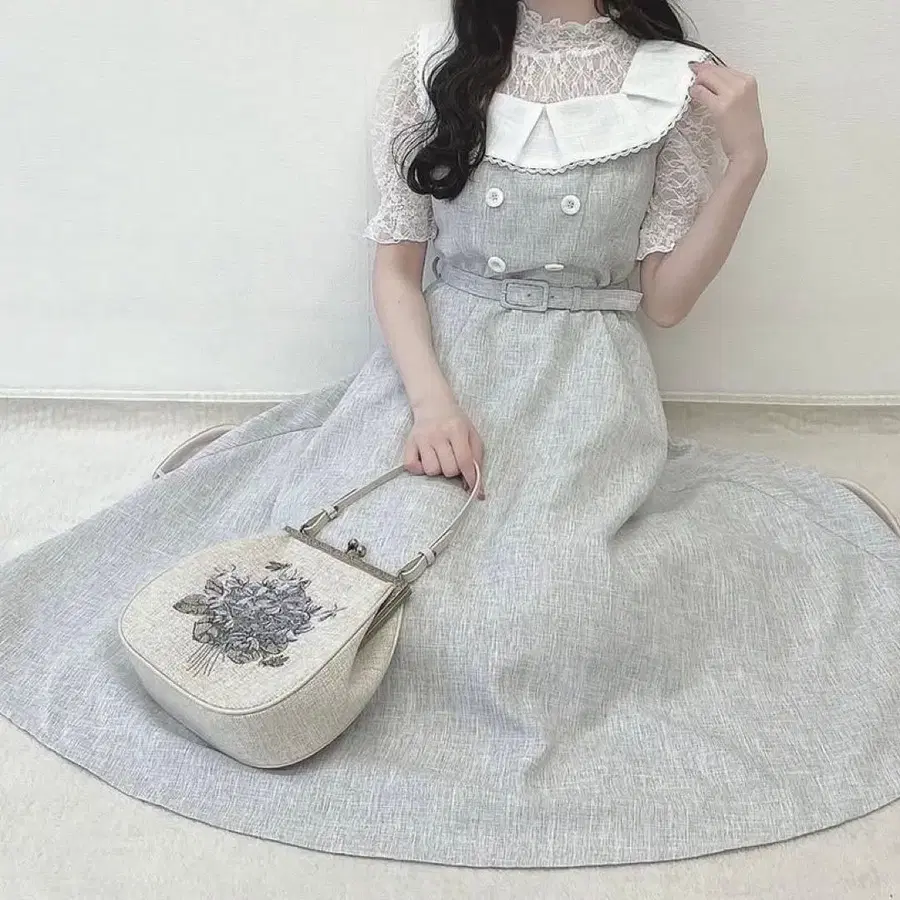 ananother angelus 썸머 트위드 스퀘어 칼라 원피스