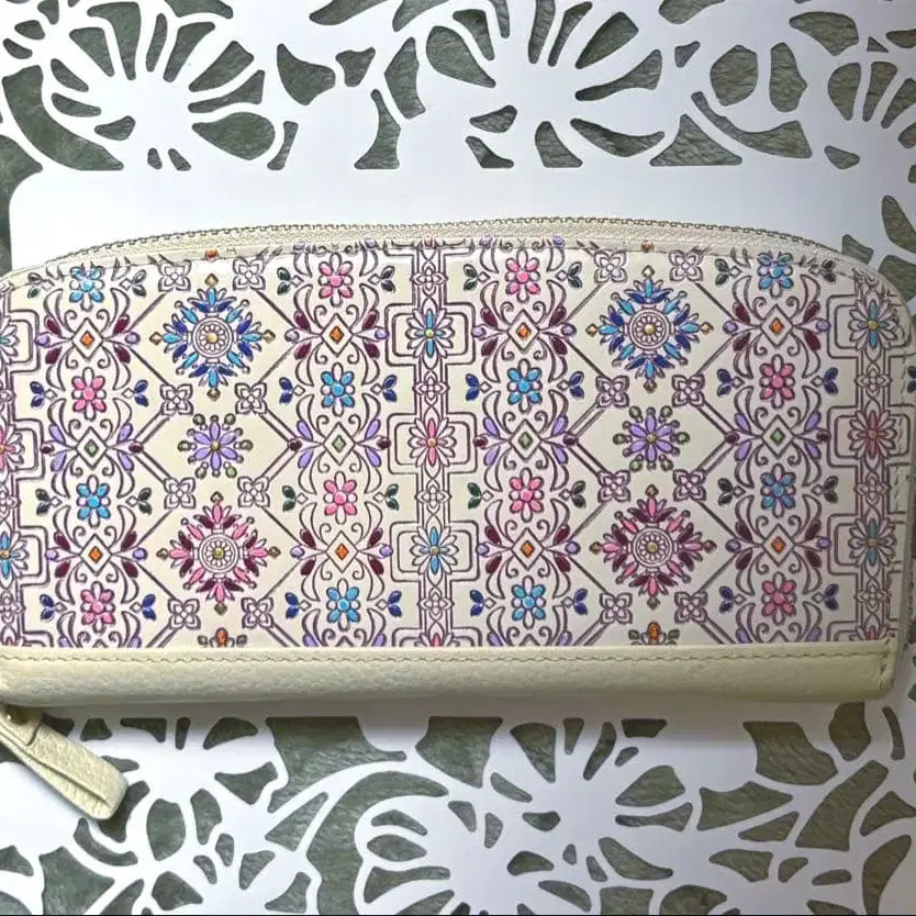 유젠 문고 플라워 가든 라운드 지퍼 장지갑 핑크