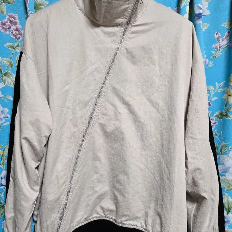 antiqua 안티카 사선 지퍼 배색 라인 블루종 베이지