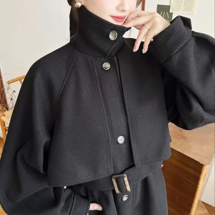 [ moment+ ] 니트 멜톤 2WAY 어레인지 칼라 롱 코트
