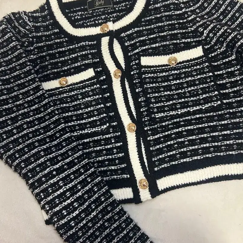 Rady 블랙 화이트 스트라이프 크롭 가디건