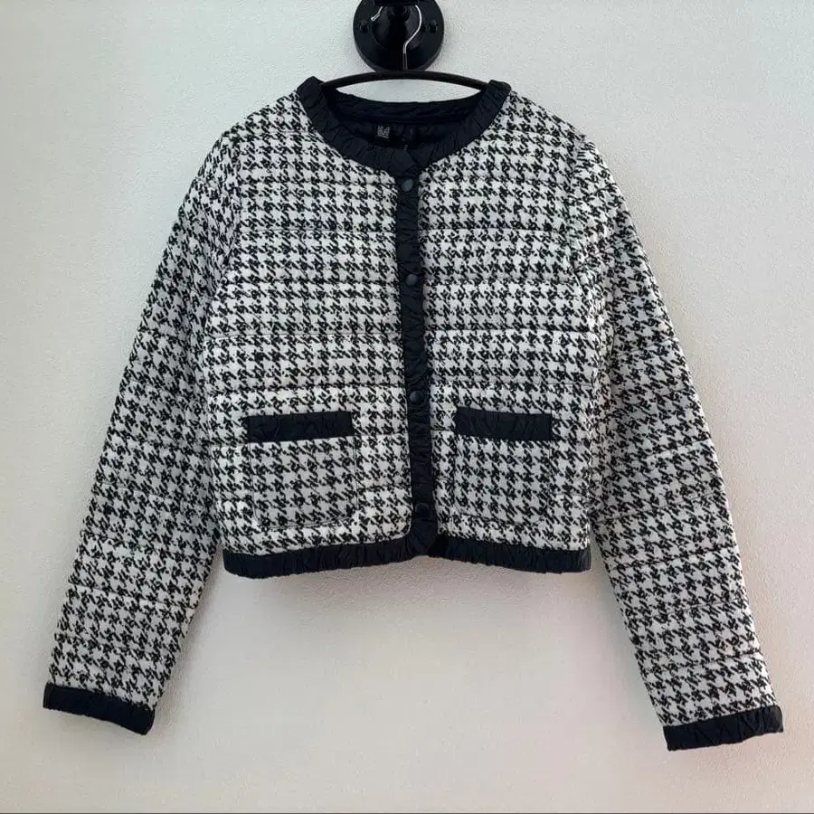 ◆ mango 하운드투스 노카라 자켓 퀼팅 충전솜 모노톤 수납 가방 포함 ◆