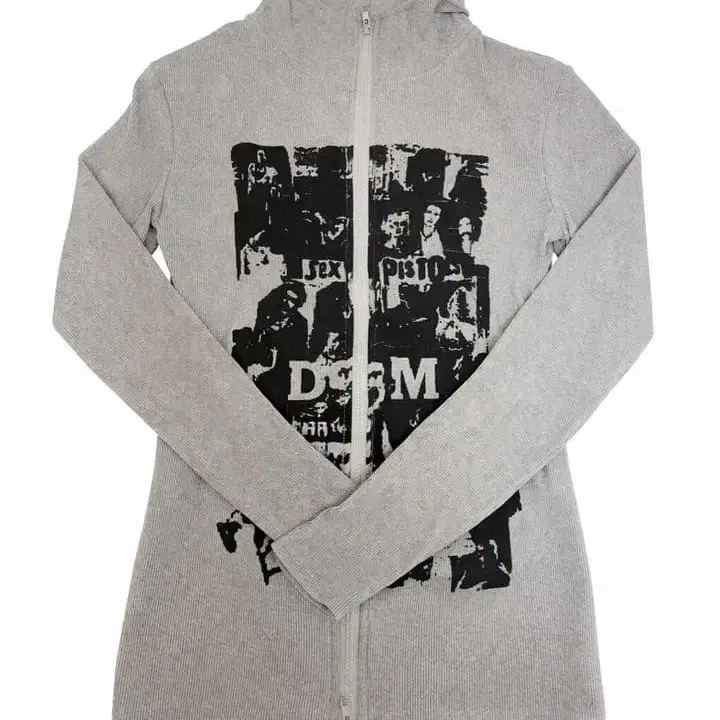 그래픽 프린트 집업 리브 상의 그레이 Y2K