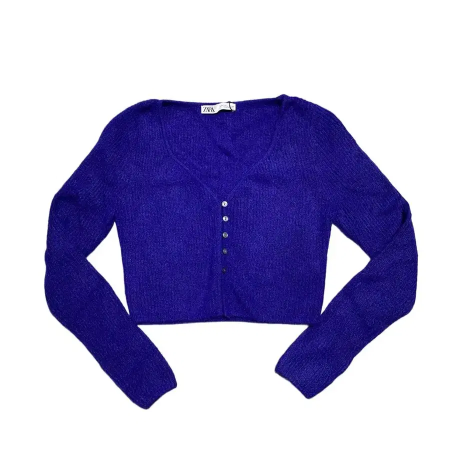 ZARA 털 복슬복슬 크롭 가디건 긴팔 니트 모헤어 군청색